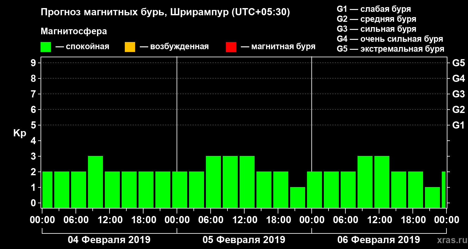 Прогноз магнитных бурь в Шрирампуре — 4 февраля 2019 года