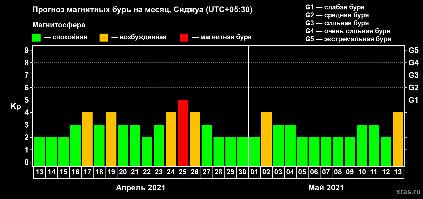 Прогноз магнитных бурь в Сиджуе — 13 апреля 2021 года