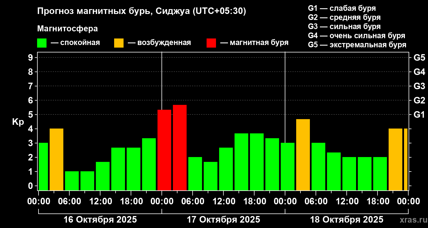 Прогноз магнитных бурь в Сиджуе — 16 октября 2025 года