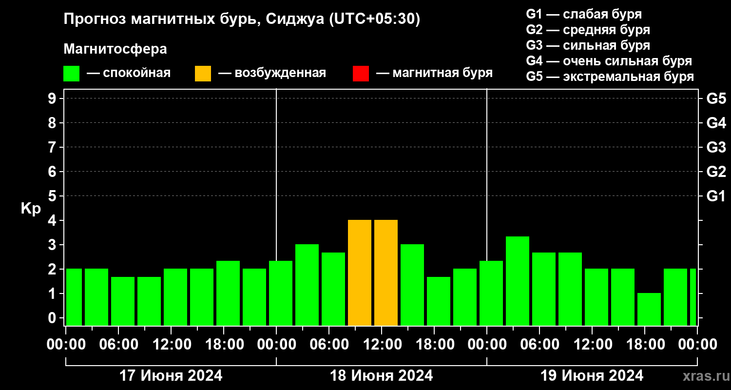 Прогноз магнитных бурь в Сиджуе — 17 июня 2024 года