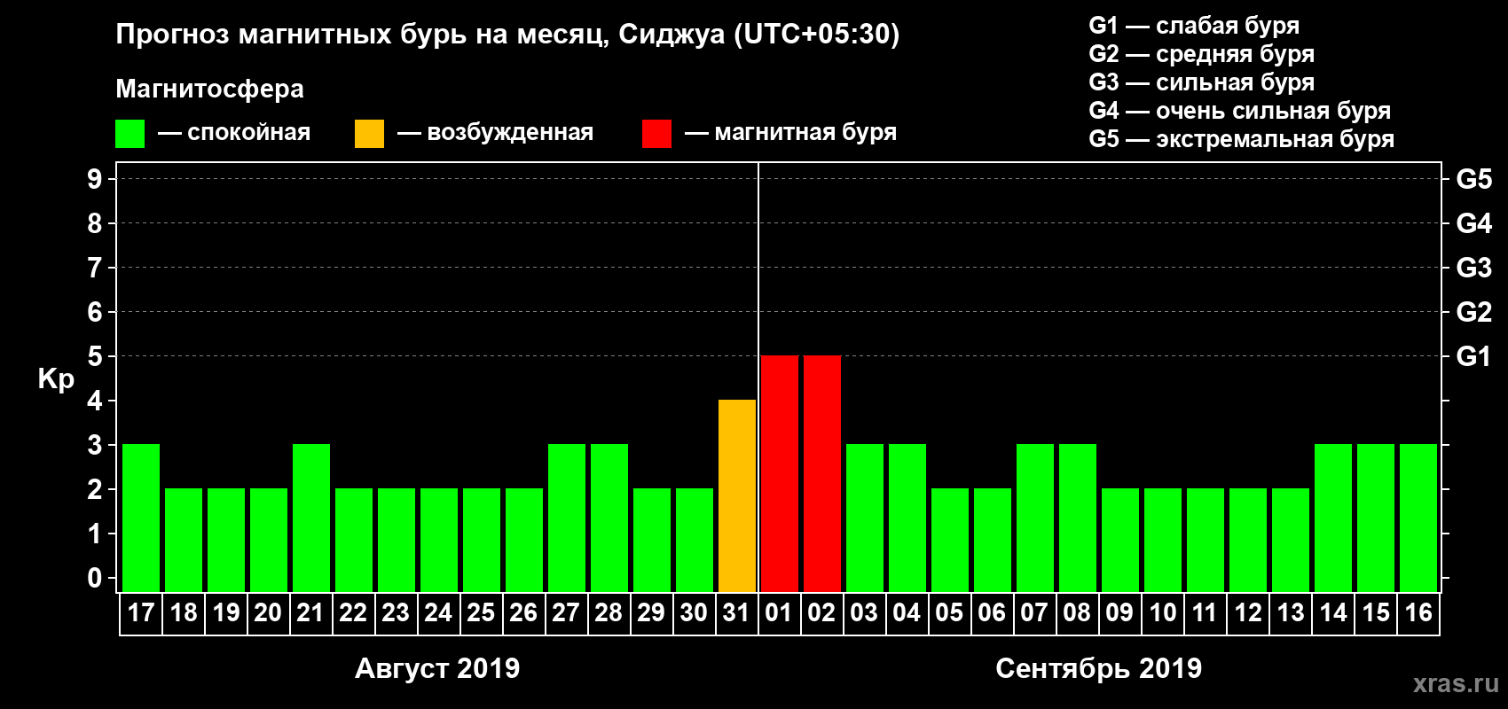 Прогноз магнитных бурь в Сиджуе — 17 августа 2019 года