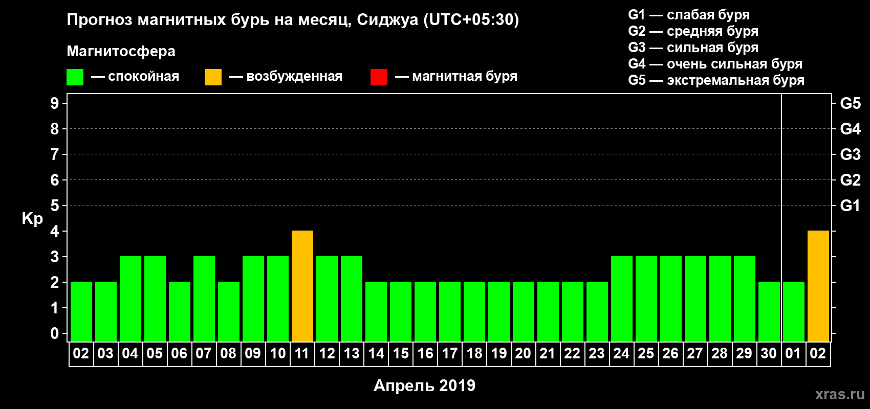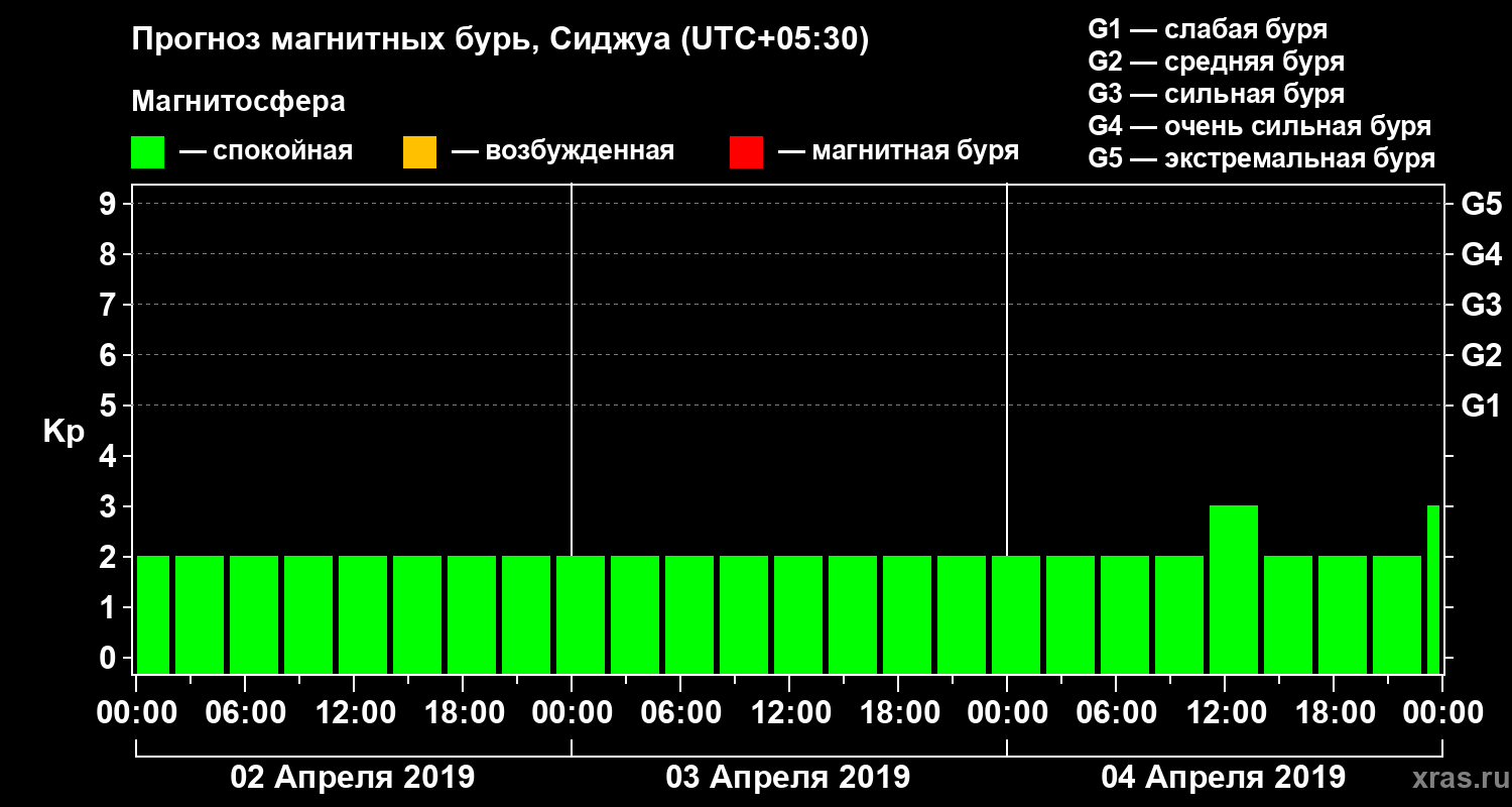 Прогноз магнитных бурь в Сиджуе — 2 апреля 2019 года