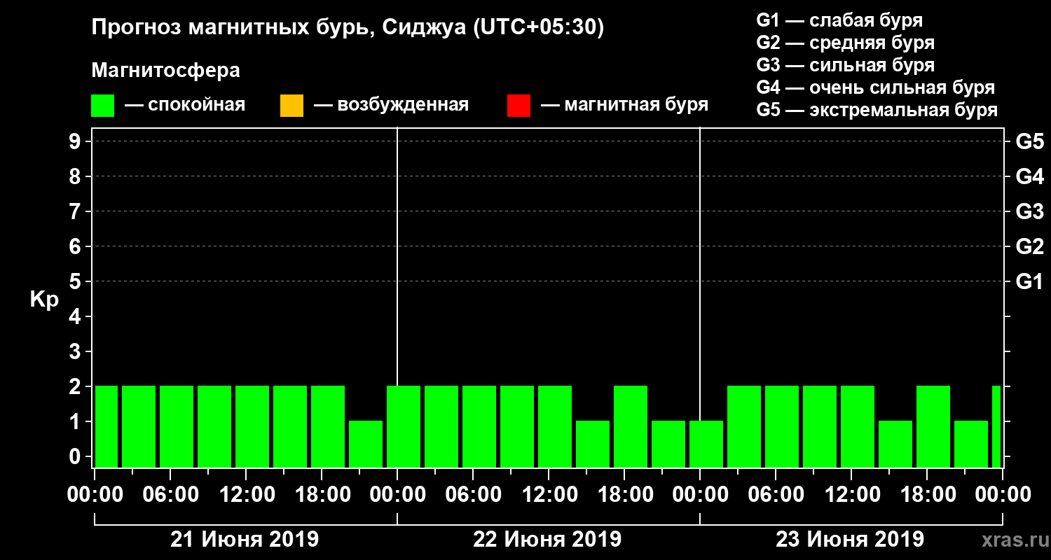 Прогноз магнитных бурь в Сиджуе — 21 июня 2019 года