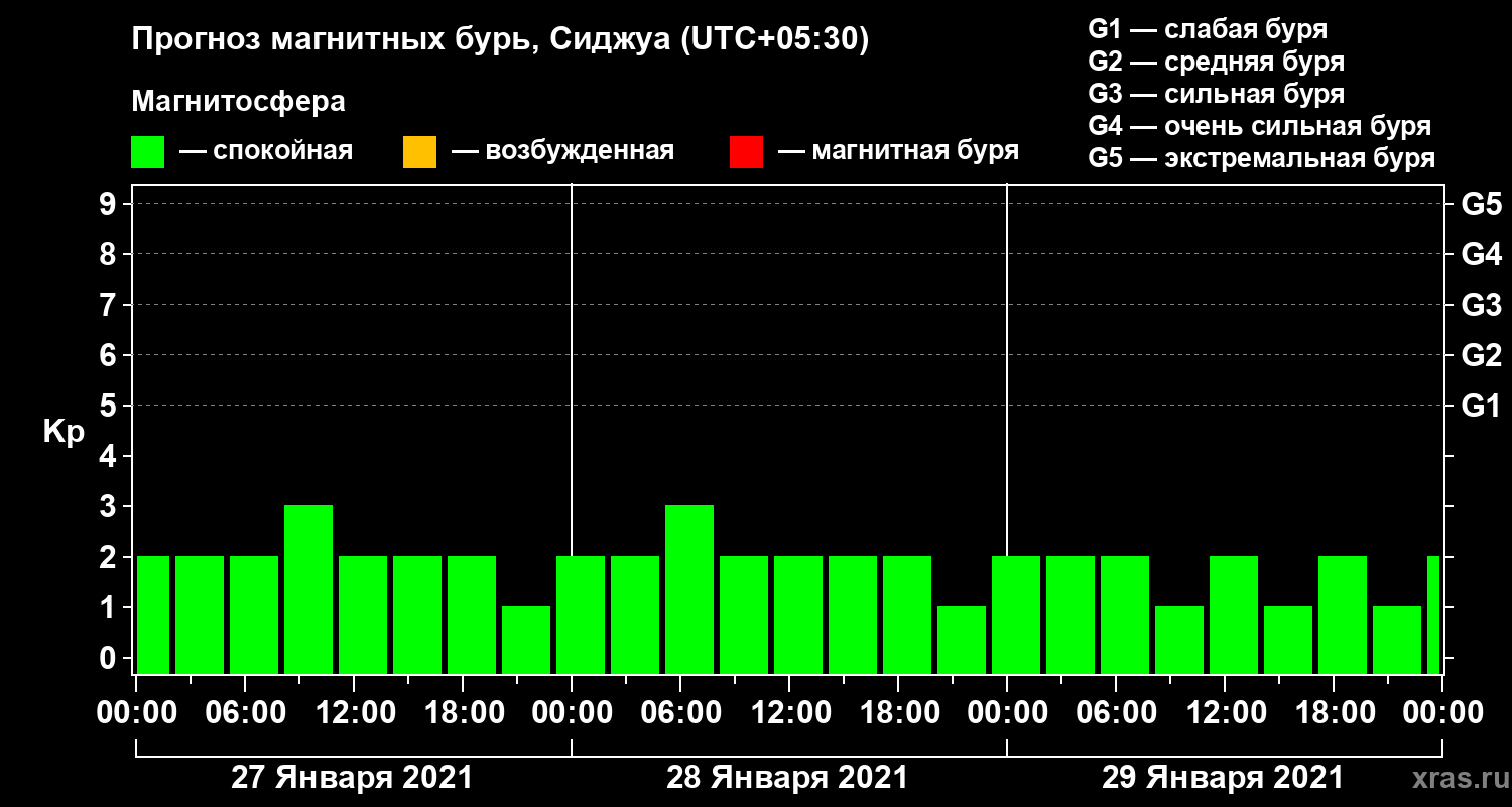Прогноз магнитных бурь в Сиджуе — 27 января 2021 года