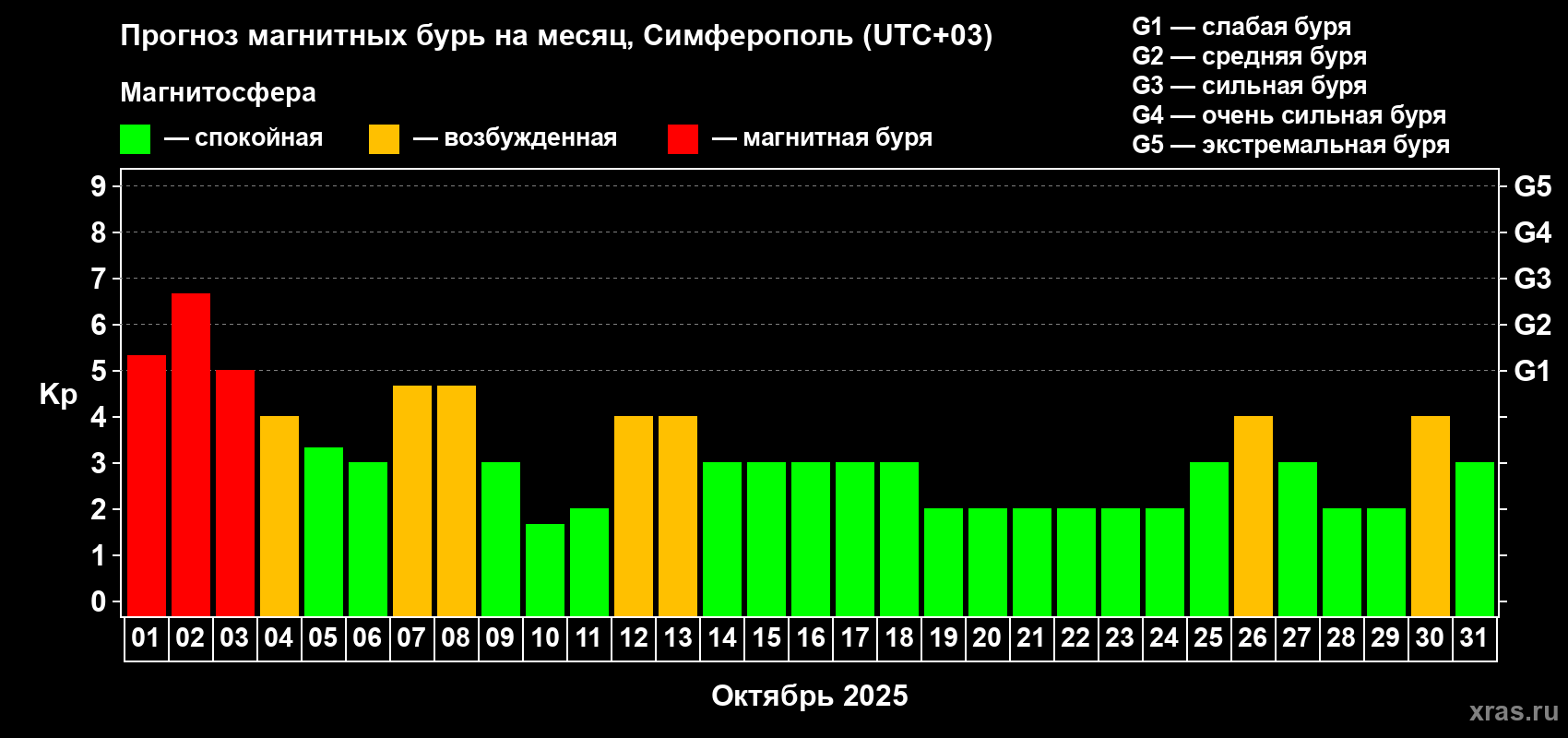Прогноз магнитных бурь в Симферополе — 1 октября 2025 года