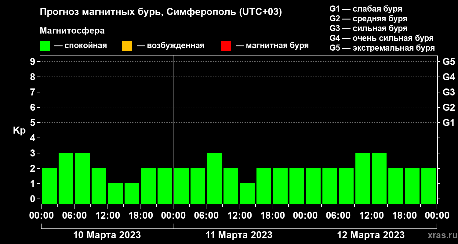 Прогноз магнитных бурь в Симферополе — 10 марта 2023 года