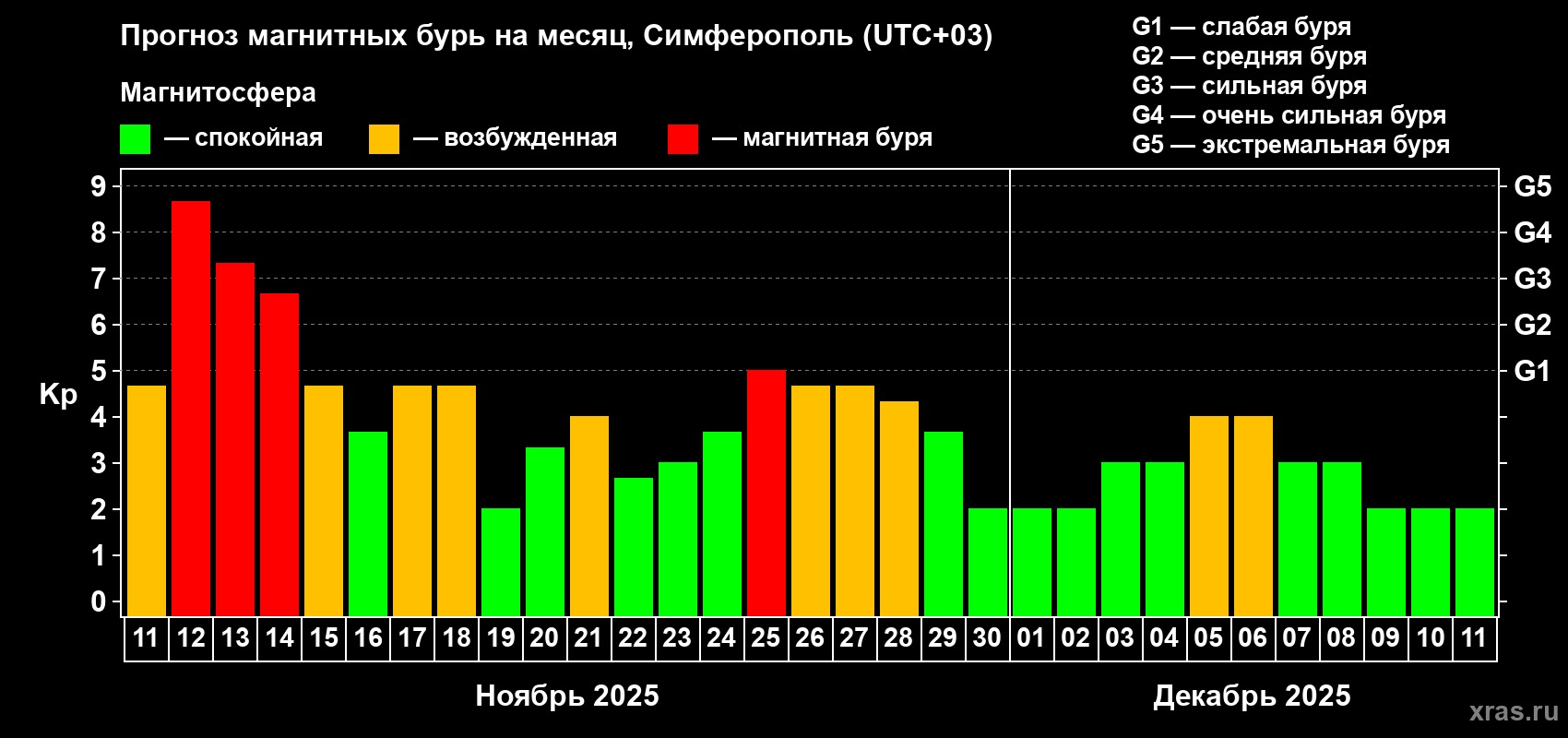 Прогноз магнитных бурь в Симферополе — 11 ноября 2025 года