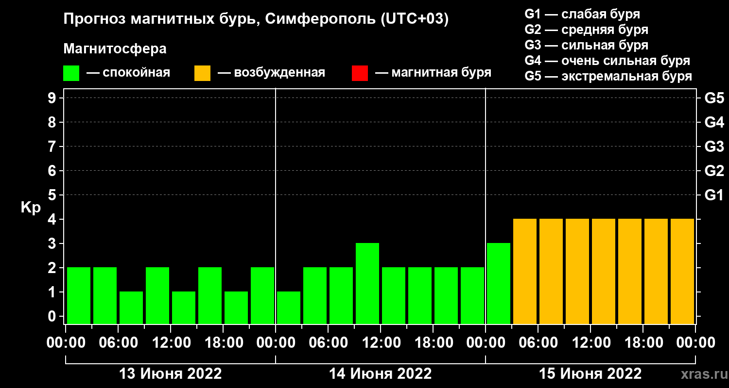Прогноз магнитных бурь в Симферополе — 13 июня 2022 года