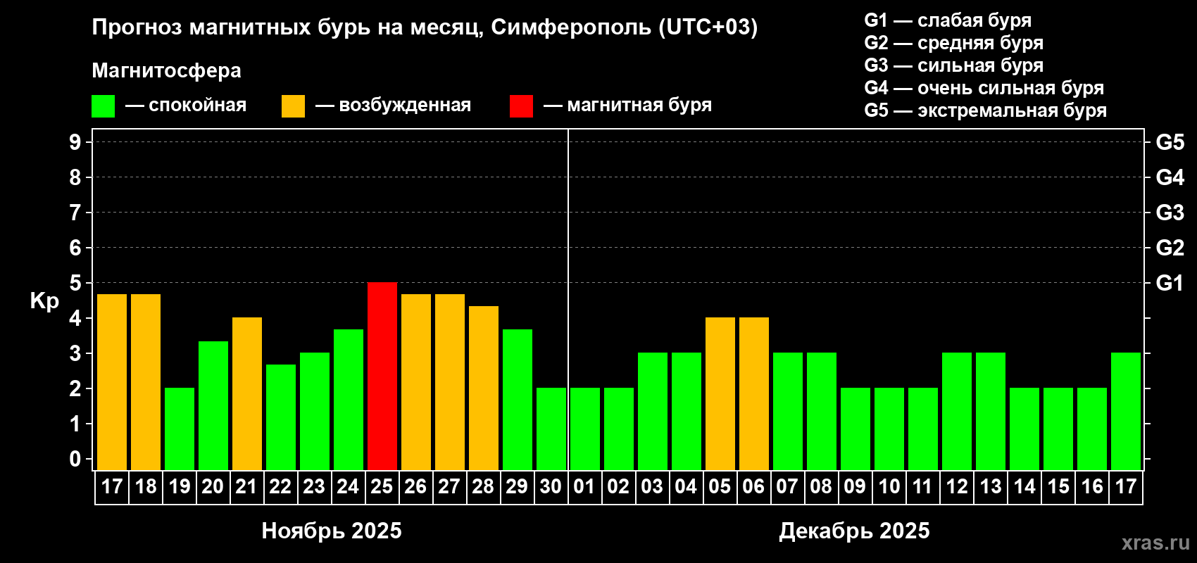 Прогноз магнитных бурь в Симферополе — 17 ноября 2025 года