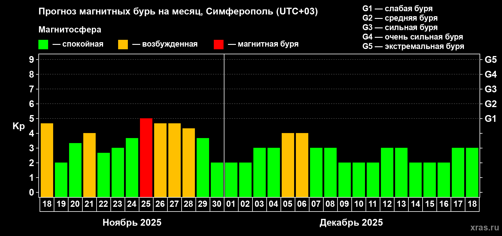 Прогноз магнитных бурь в Симферополе — 18 ноября 2025 года