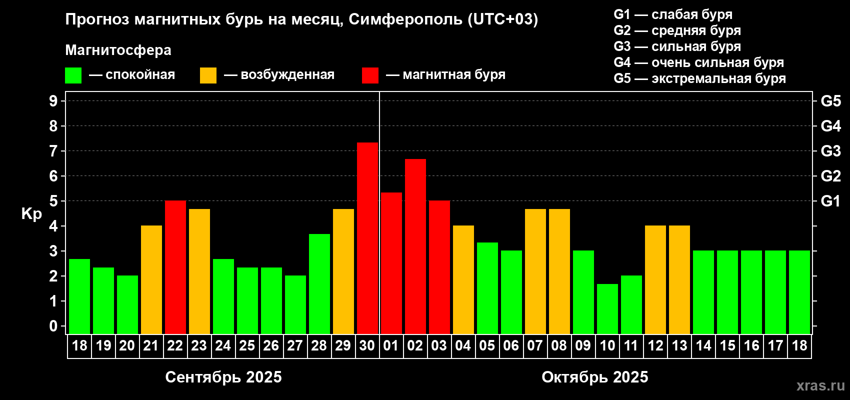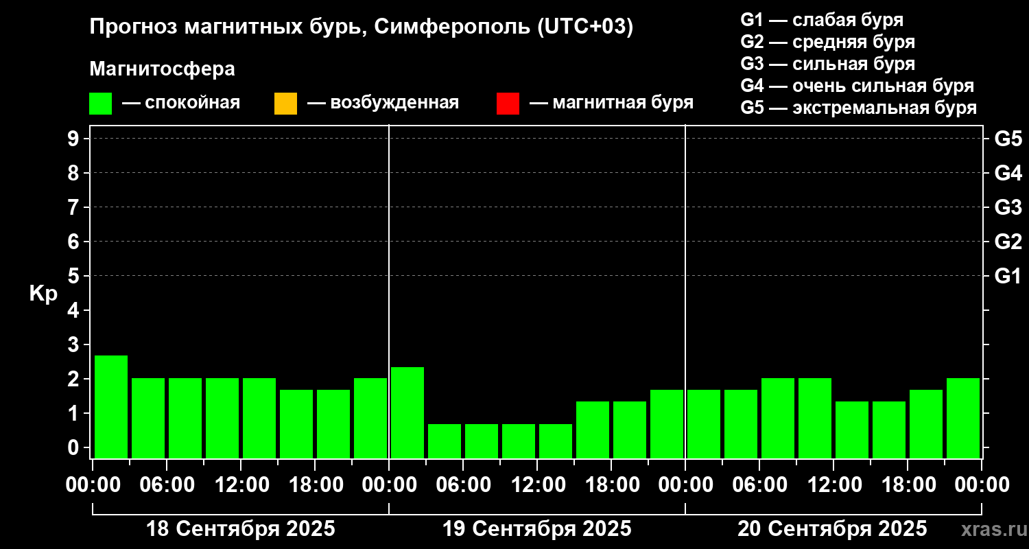 Прогноз магнитных бурь в Симферополе — 18 сентября 2025 года