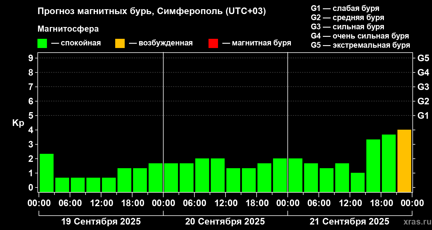 Прогноз магнитных бурь в Симферополе — 19 сентября 2025 года
