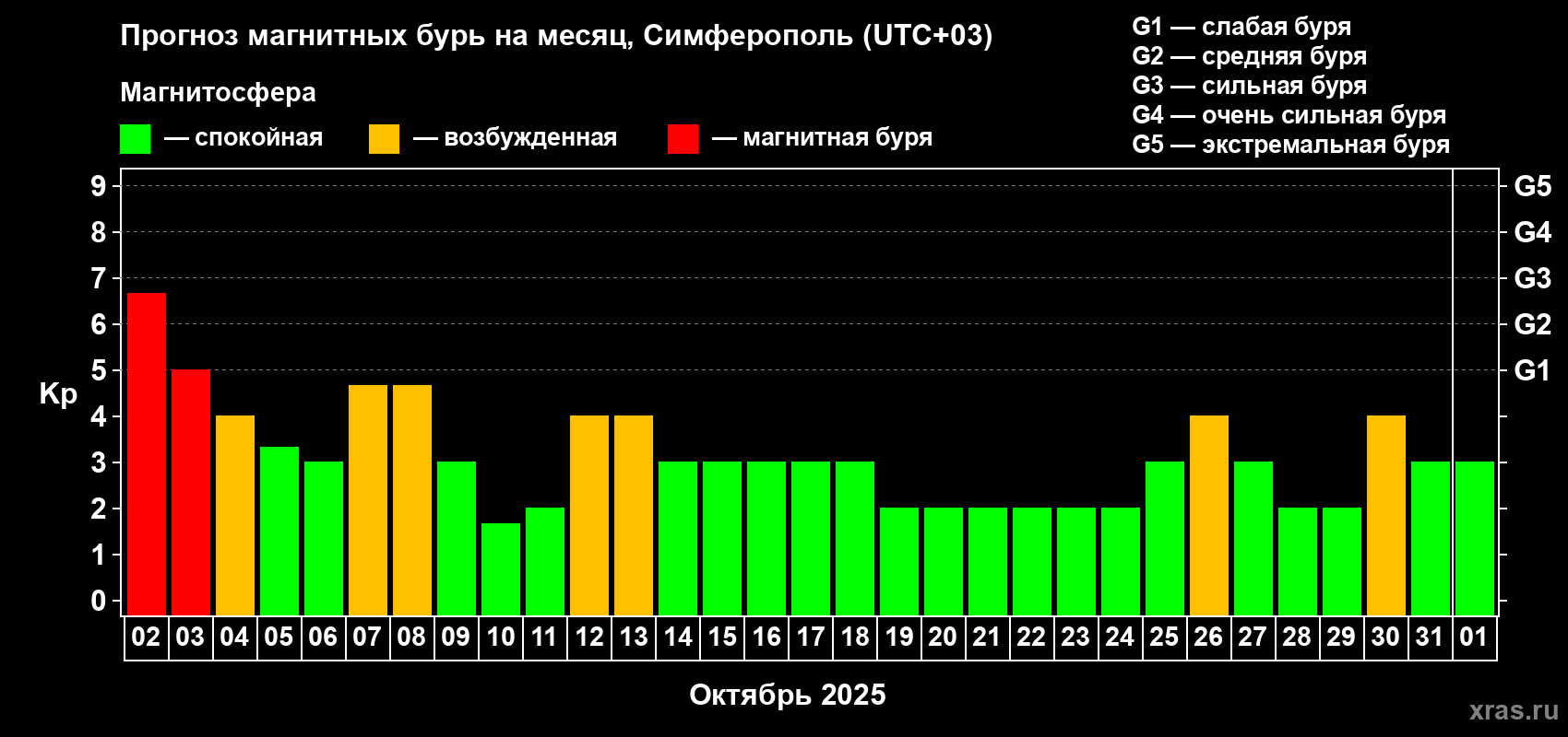 Прогноз магнитных бурь в Симферополе — 2 октября 2025 года