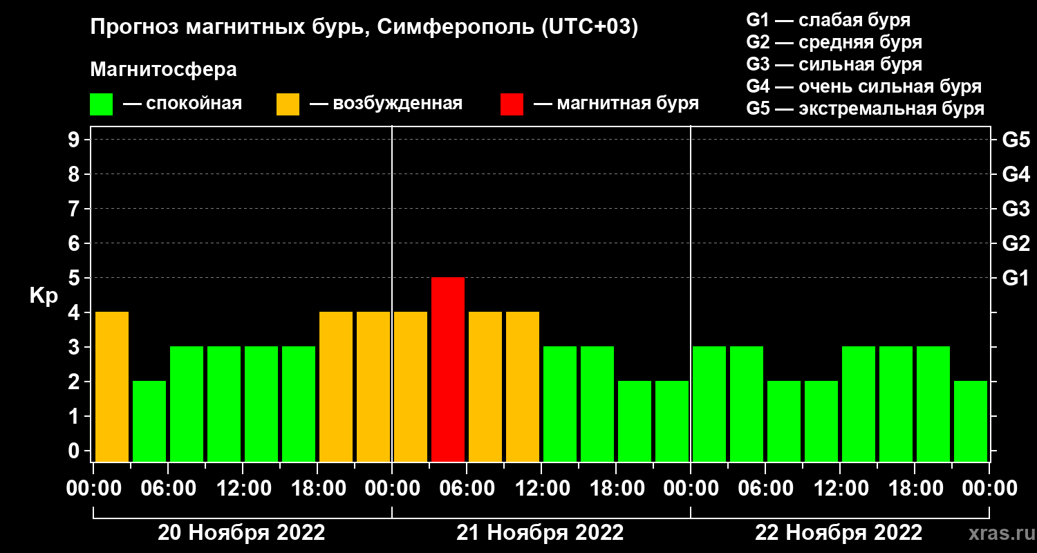 Прогноз магнитных бурь в Симферополе — 20 ноября 2022 года
