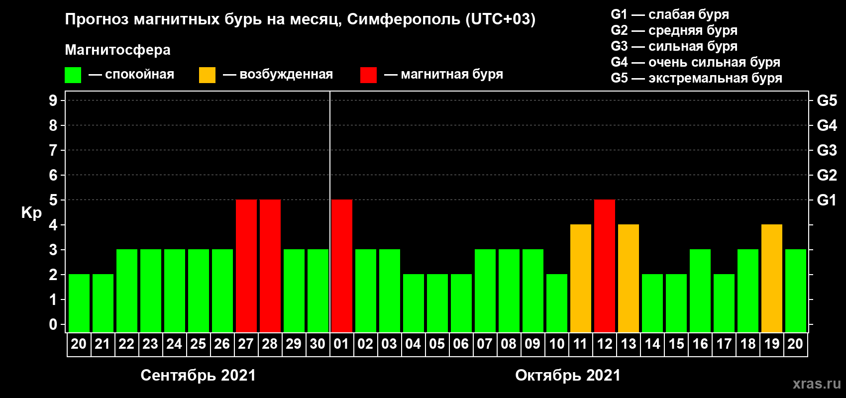 Прогноз магнитных бурь в Симферополе на 20 сентября 2021 года