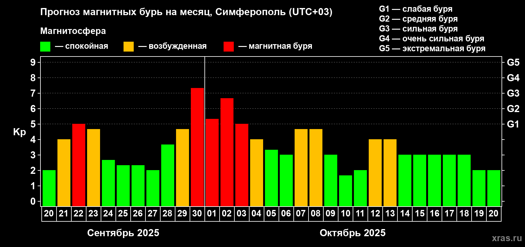 Прогноз магнитных бурь в Симферополе — 20 сентября 2025 года