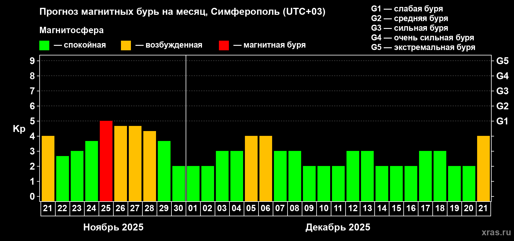 Прогноз магнитных бурь в Симферополе — 21 ноября 2025 года