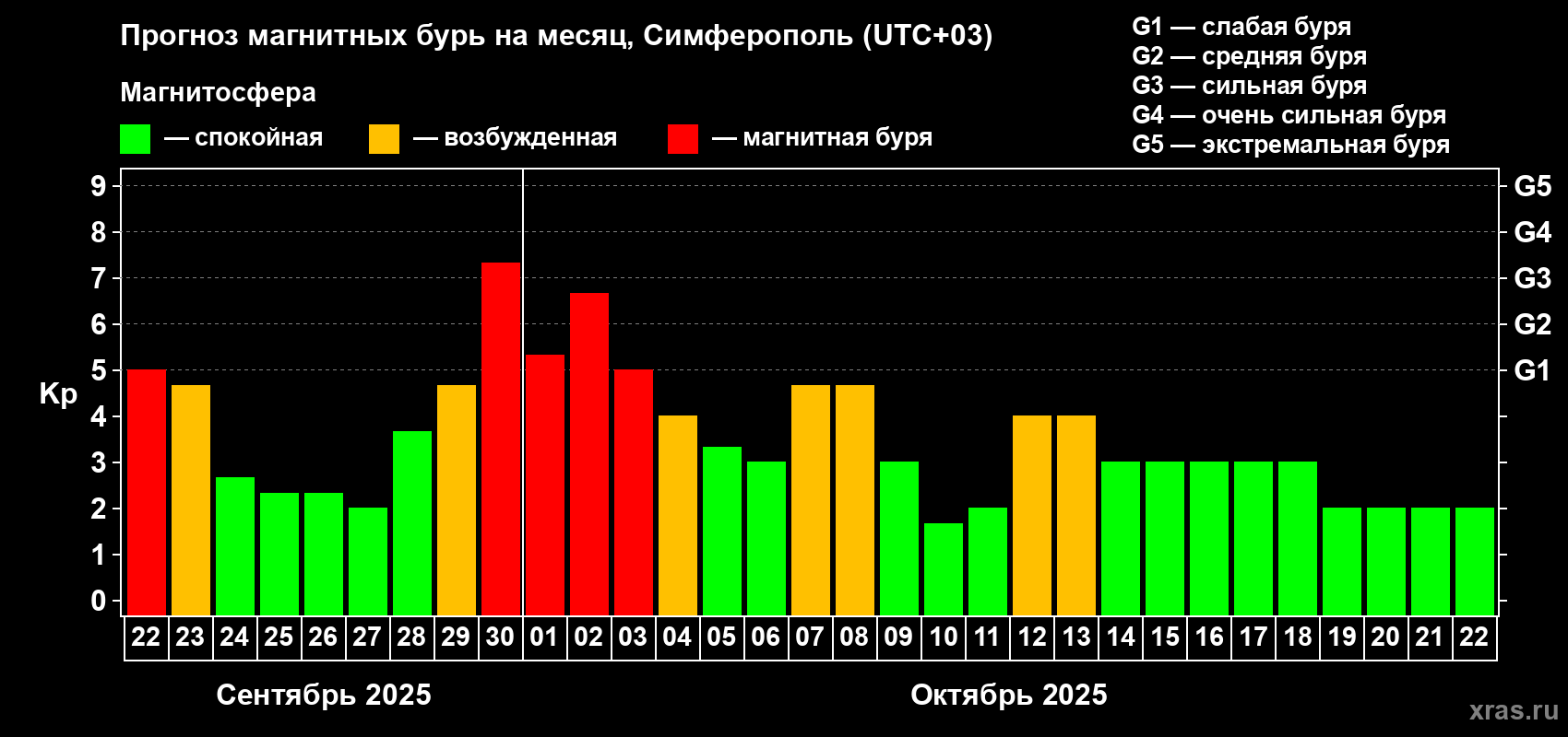 Прогноз магнитных бурь в Симферополе — 22 сентября 2025 года