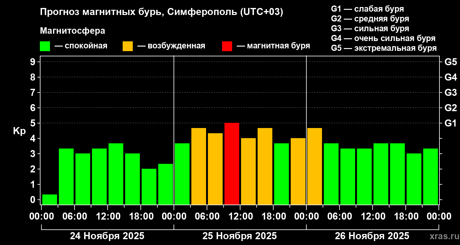 Прогноз магнитных бурь в Симферополе — 24 ноября 2025 года