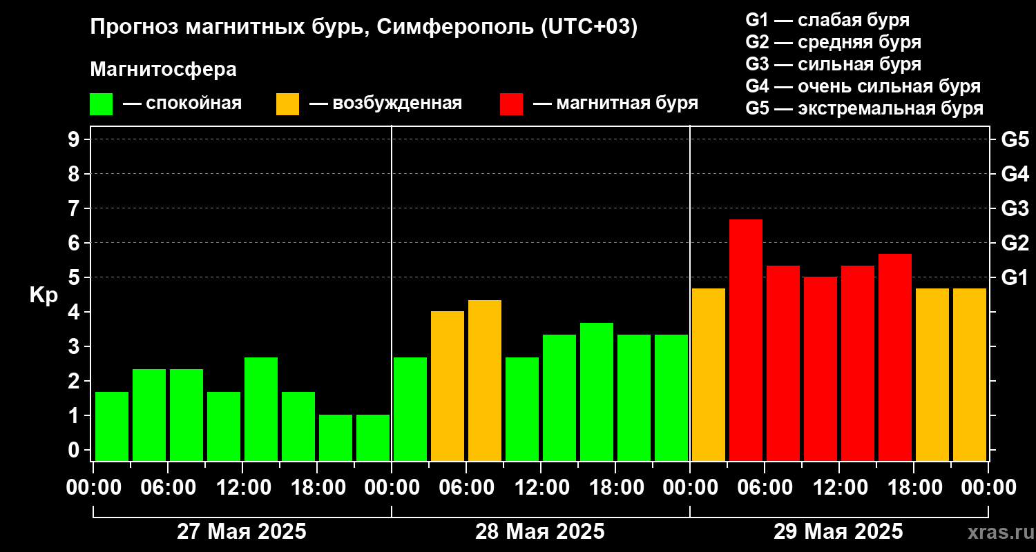 Прогноз магнитных бурь в Симферополе на 27 мая 2025 года