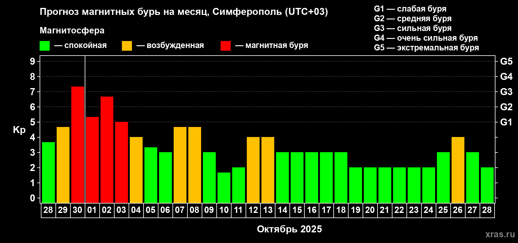 Прогноз магнитных бурь в Симферополе — 28 сентября 2025 года