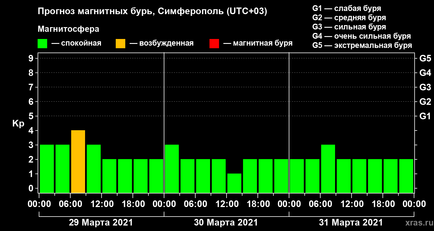 Прогноз магнитных бурь в Симферополе — 29 марта 2021 года