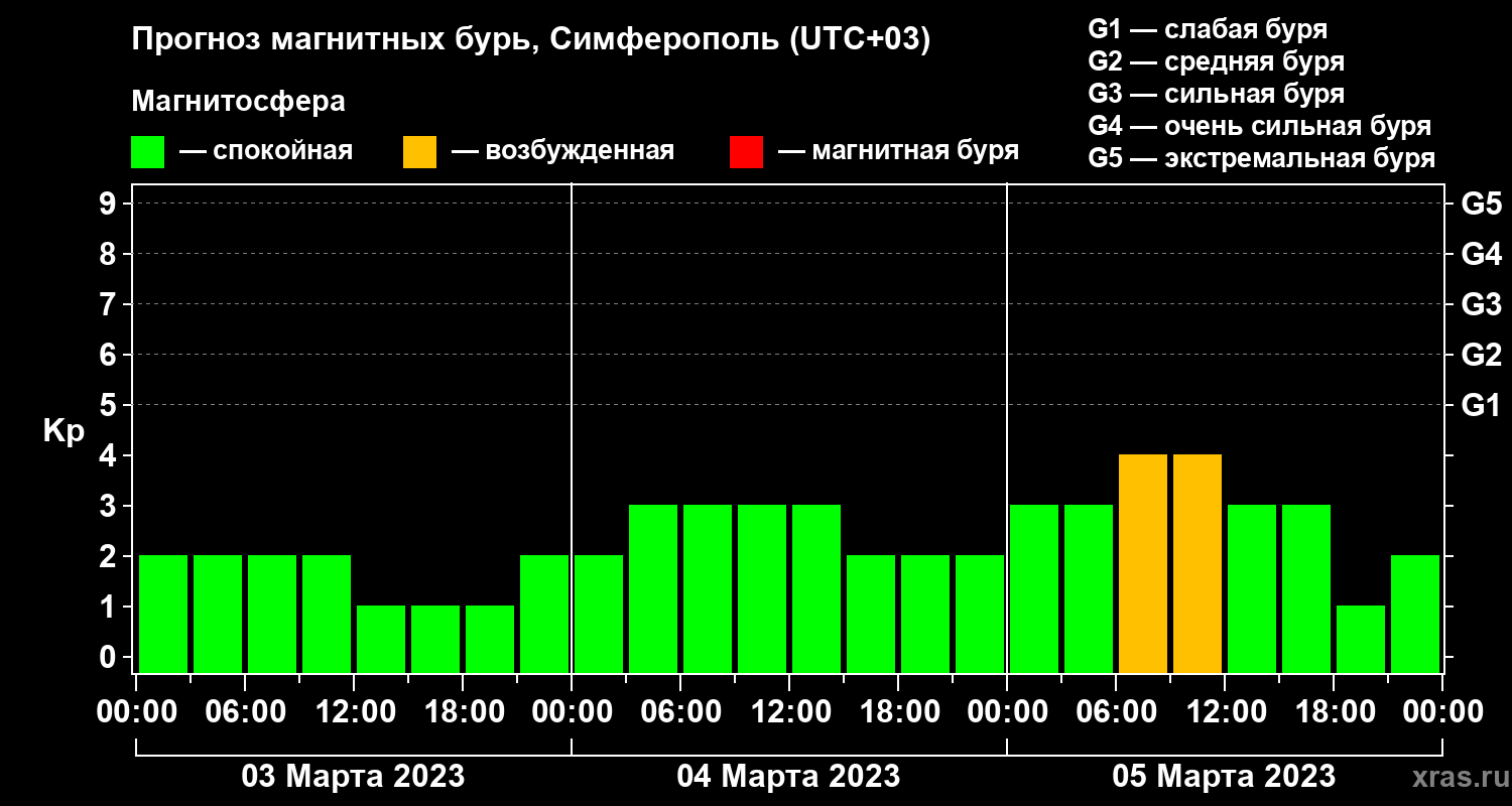 Прогноз магнитных бурь в Симферополе — 3 марта 2023 года