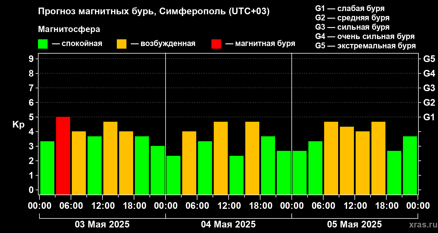 Прогноз магнитных бурь в Симферополе — 3 мая 2025 года