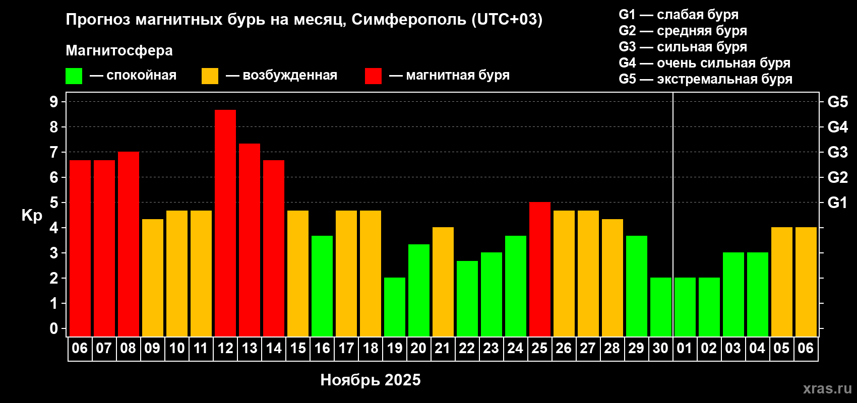 Прогноз магнитных бурь в Симферополе — 6 ноября 2025 года