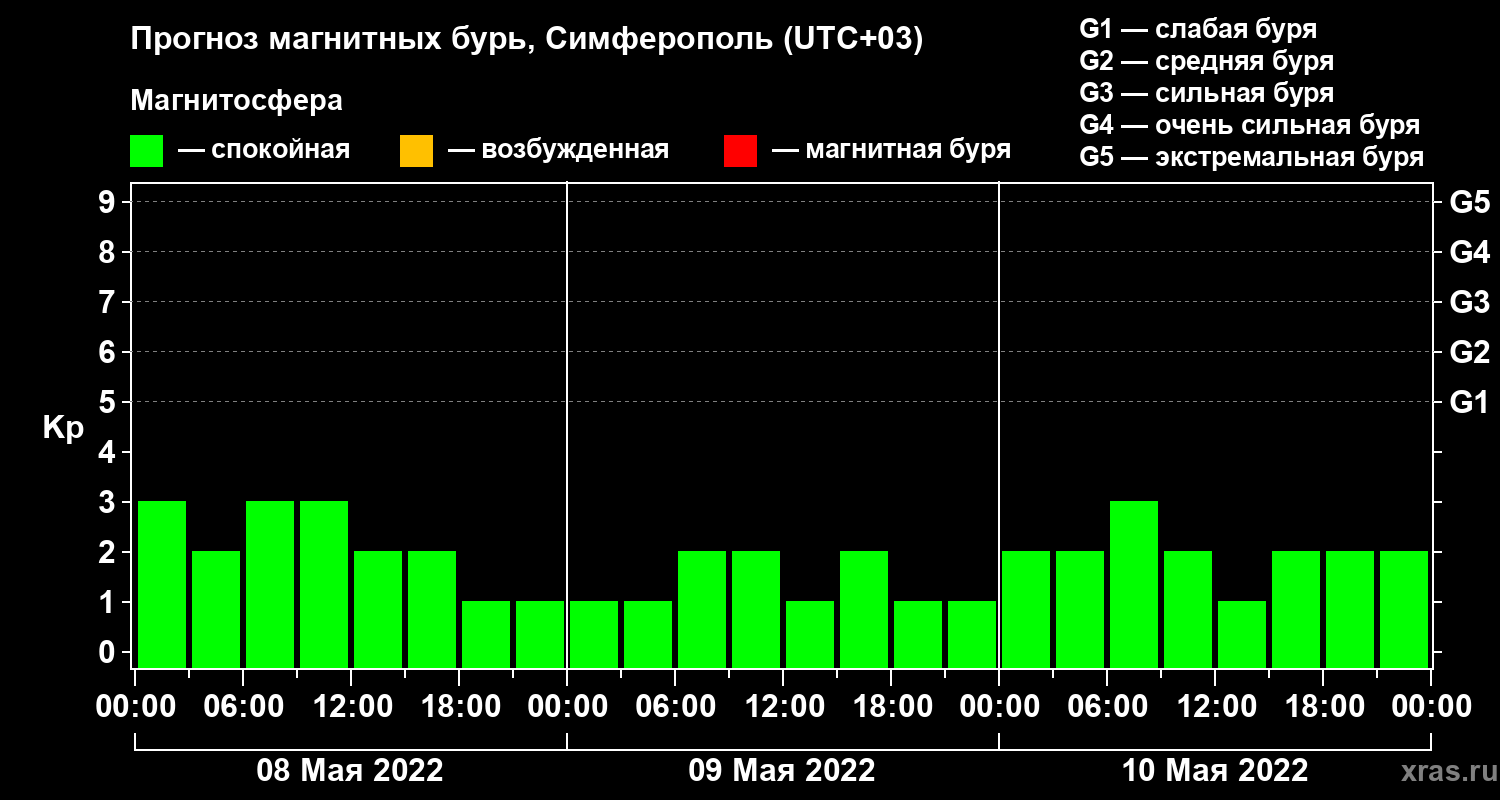 Прогноз магнитных бурь в Симферополе — 8 мая 2022 года