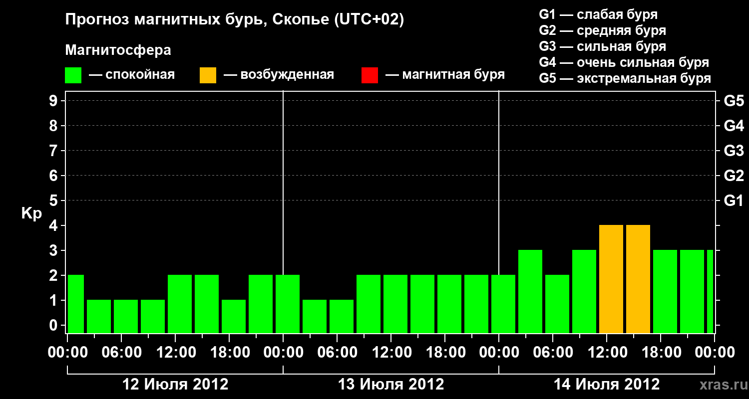 Прогноз магнитных бурь в Скопье — 12 июля 2012 года
