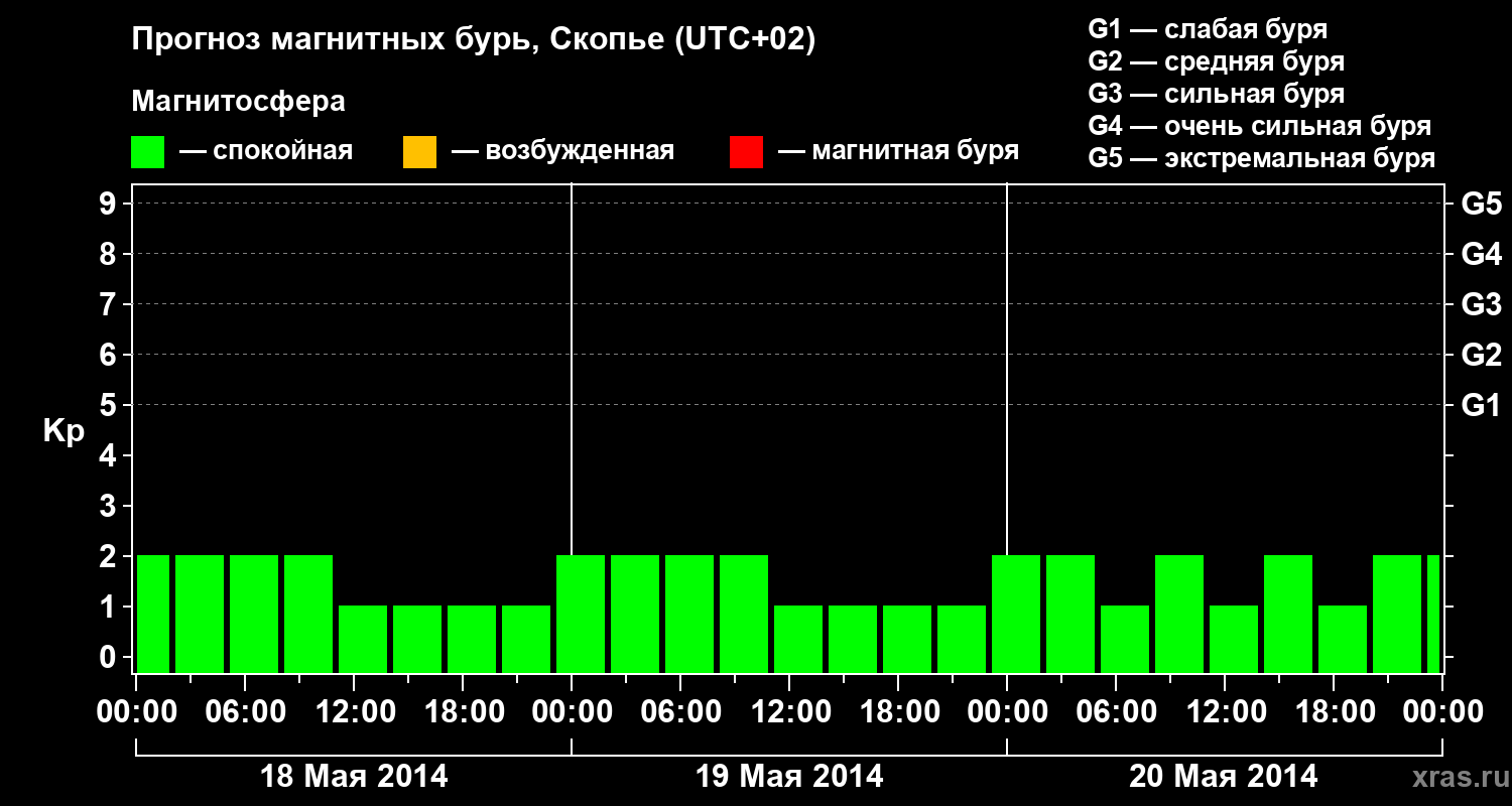 Прогноз магнитных бурь в Скопье — 18 мая 2014 года