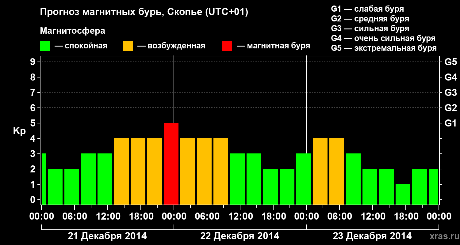 Прогноз магнитных бурь в Скопье — 21 декабря 2014 года