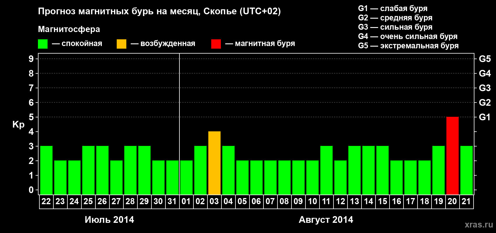 Прогноз магнитных бурь в Скопье — 22 июля 2014 года