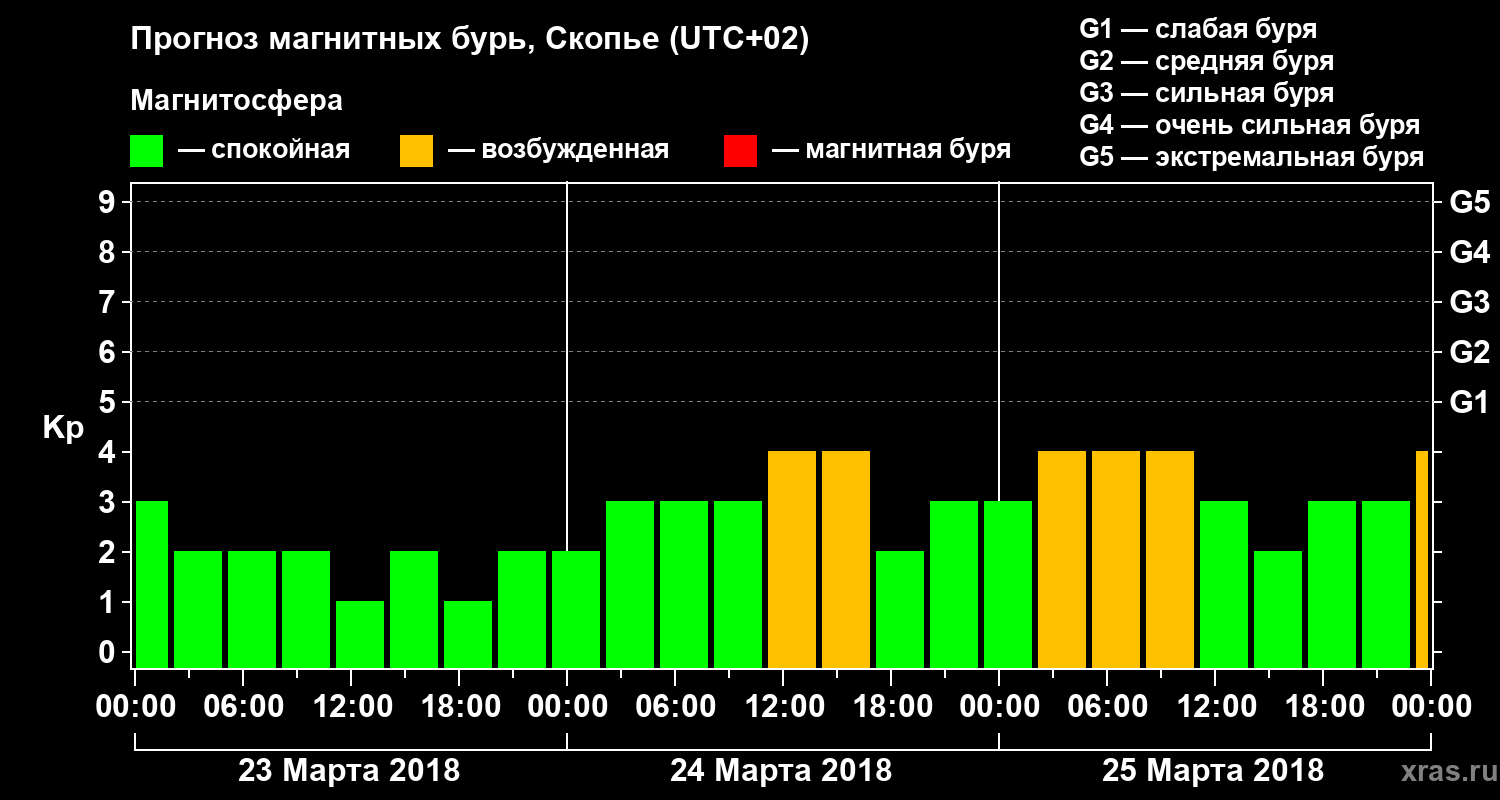 Прогноз магнитных бурь в Скопье — 23 марта 2018 года