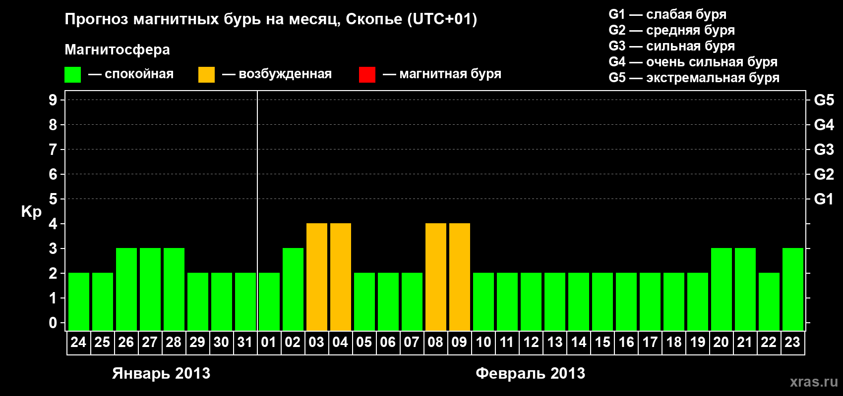 Прогноз магнитных бурь в Скопье — 24 января 2013 года