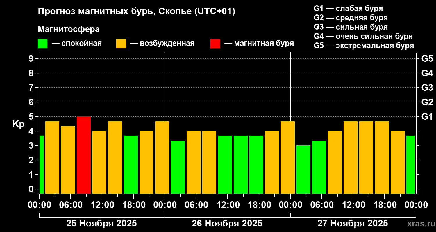 Прогноз магнитных бурь в Скопье на 25 ноября 2025 года