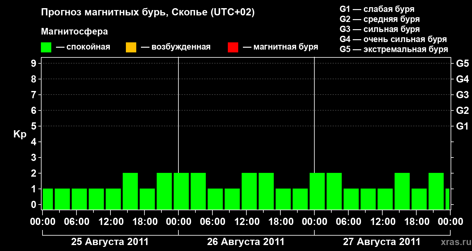 Прогноз магнитных бурь в Скопье — 25 августа 2011 года