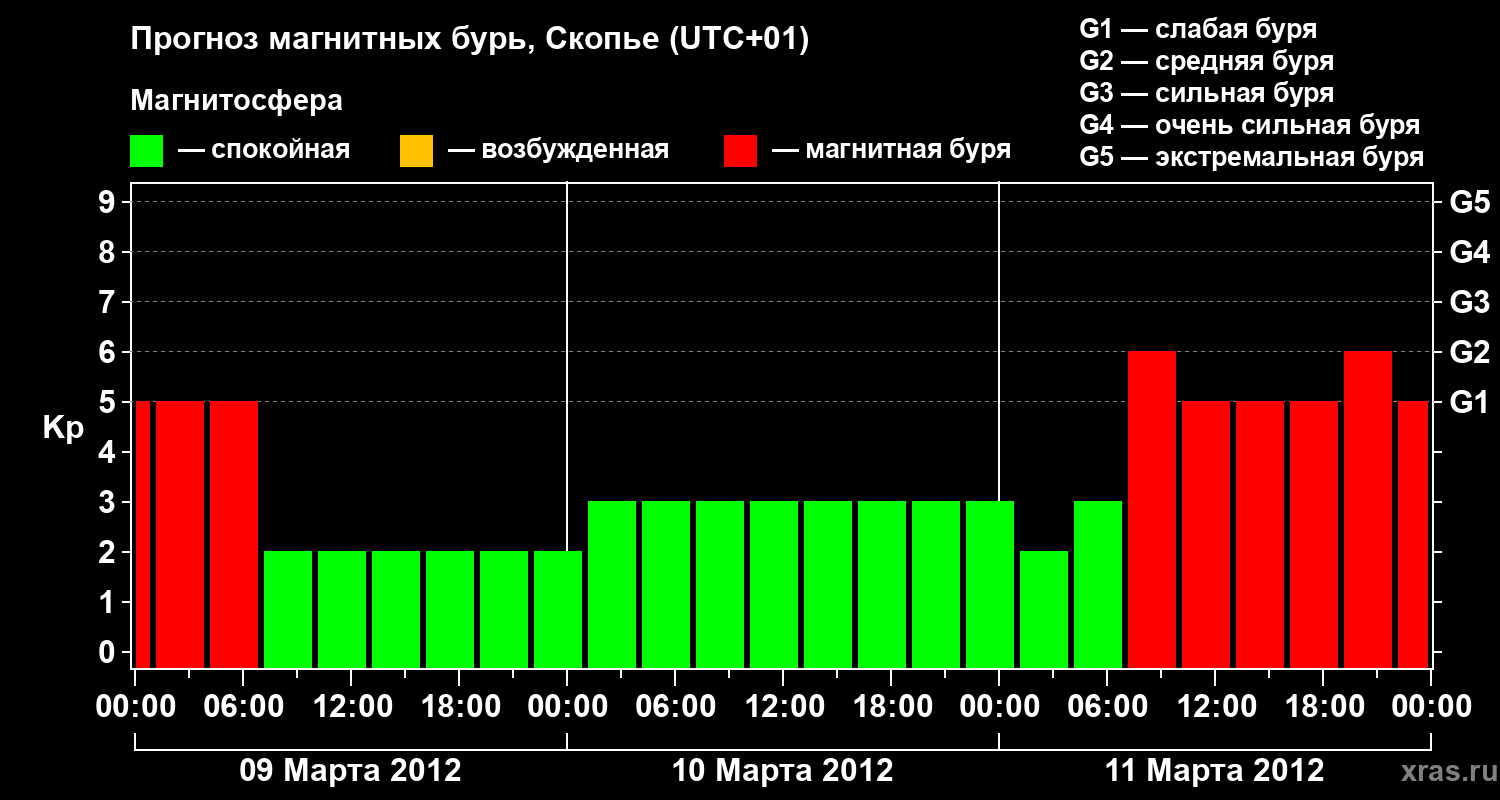 Прогноз магнитных бурь в Скопье — 9 марта 2012 года
