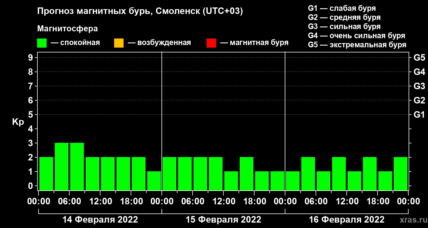 Прогноз магнитных бурь в Смоленске — 14 февраля 2022 года