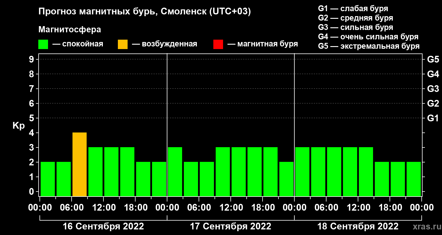 Прогноз магнитных бурь в Смоленске — 16 сентября 2022 года