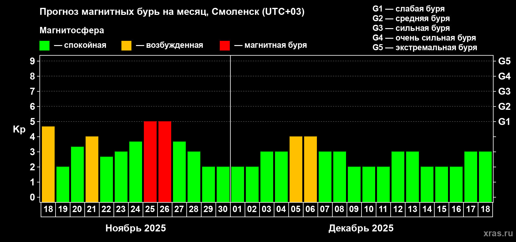 Прогноз магнитных бурь в Смоленске — 18 ноября 2025 года