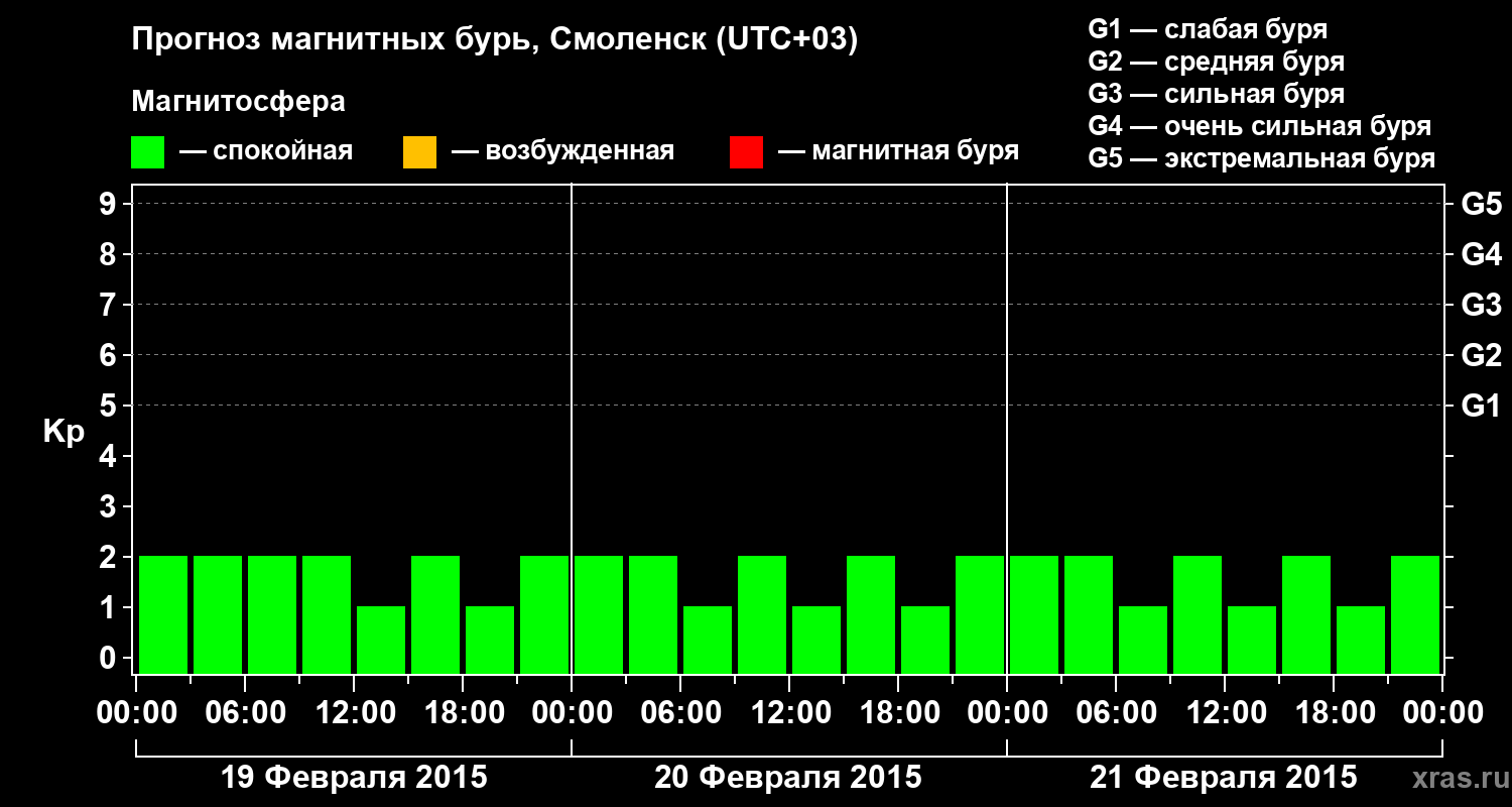 Прогноз магнитных бурь в Смоленске — 19 февраля 2015 года