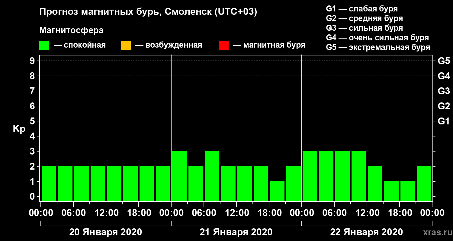 Прогноз магнитных бурь в Смоленске — 20 января 2020 года