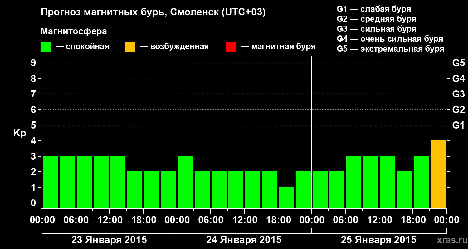Прогноз магнитных бурь в Смоленске — 23 января 2015 года