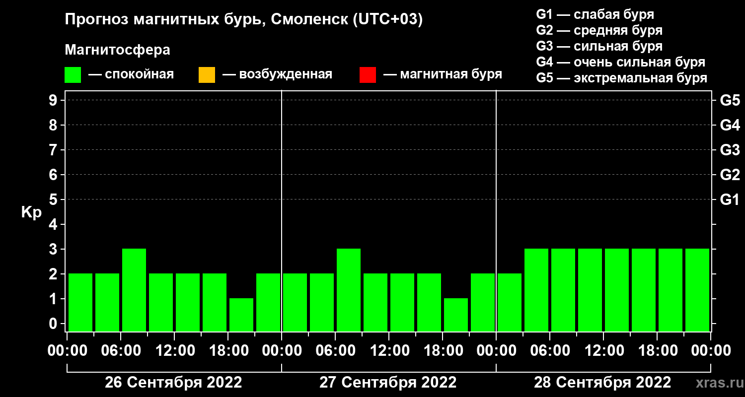 Прогноз магнитных бурь в Смоленске — 26 сентября 2022 года