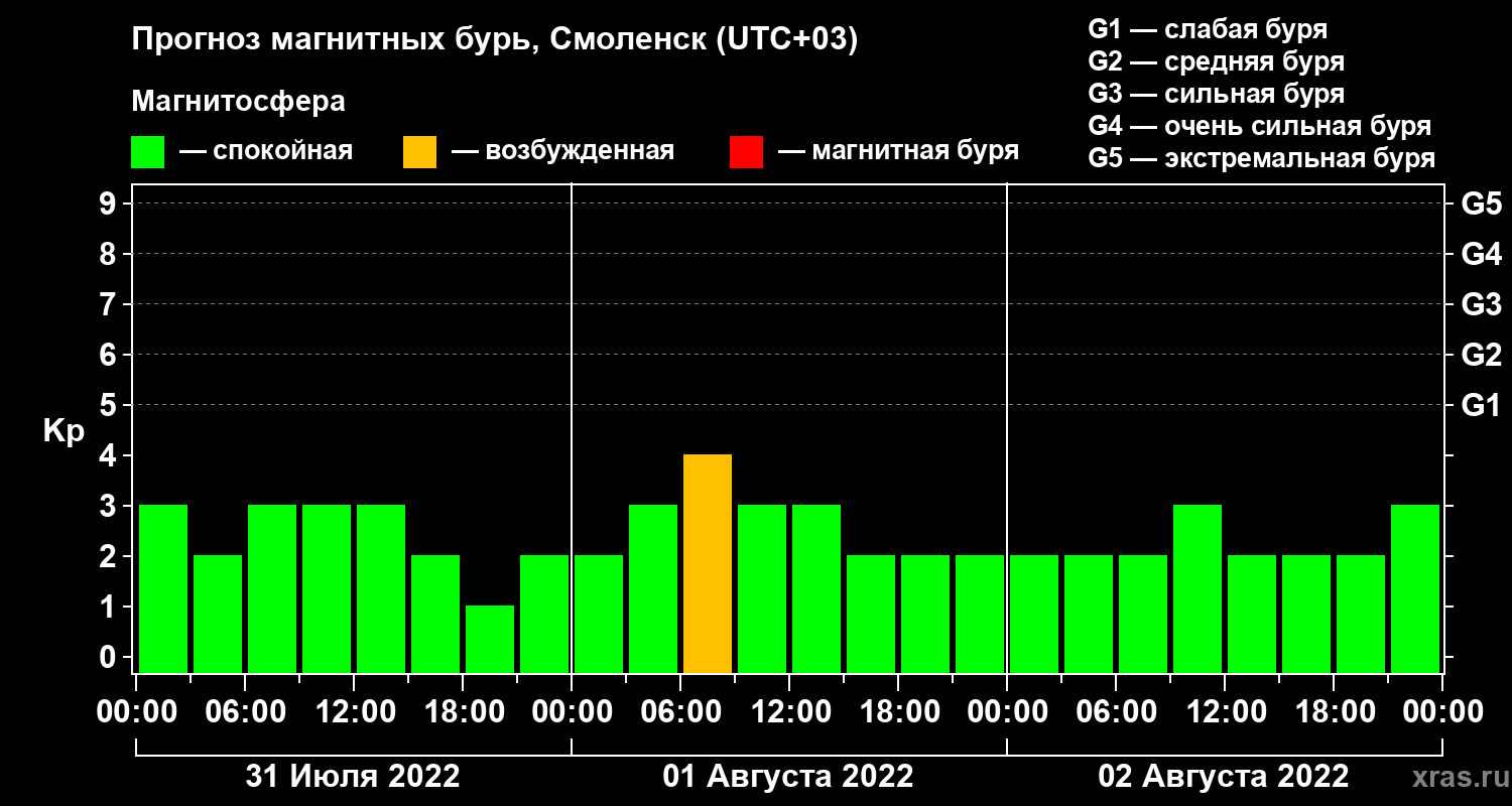 Прогноз магнитных бурь в Смоленске — 31 июля 2022 года