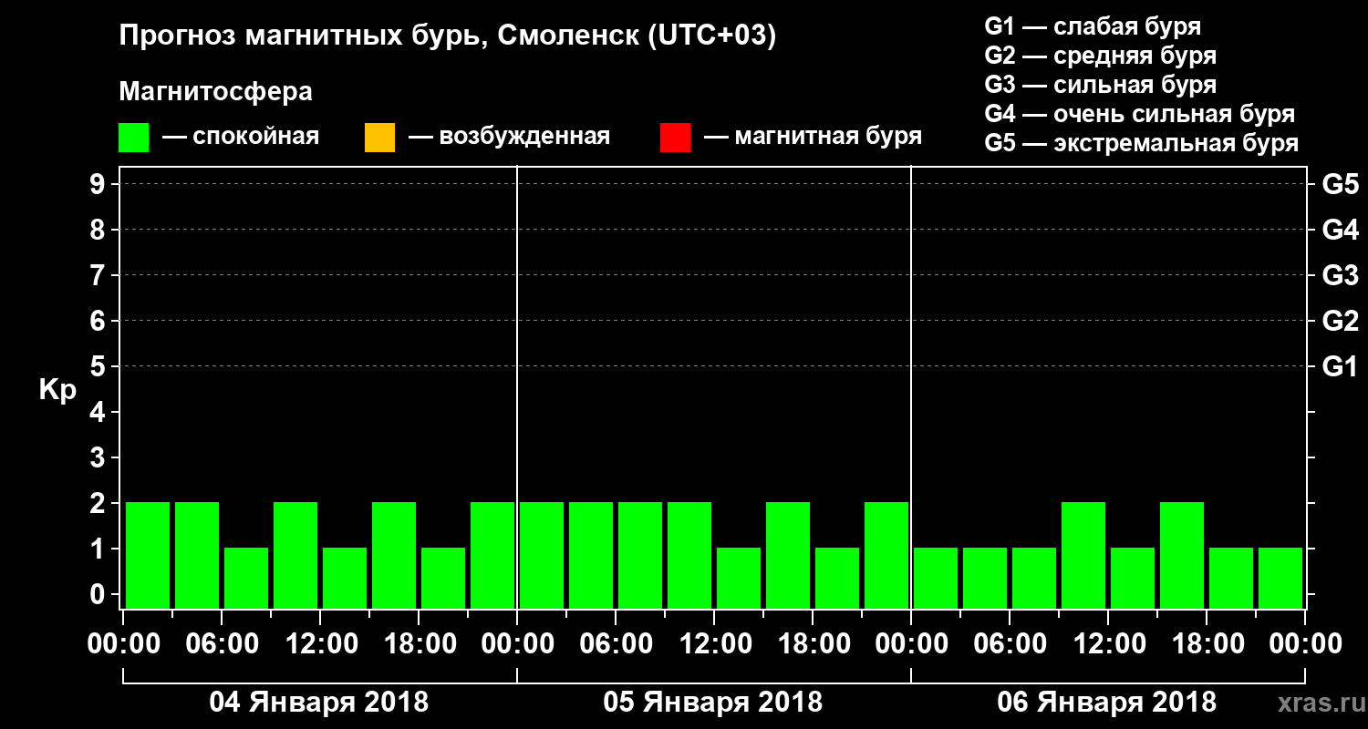 Прогноз магнитных бурь в Смоленске — 4 января 2018 года