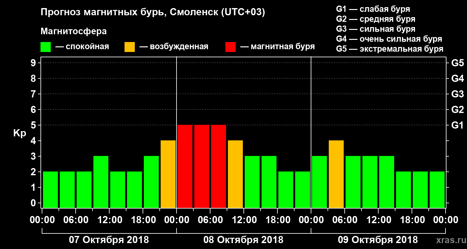 Прогноз магнитных бурь в Смоленске — 7 октября 2018 года