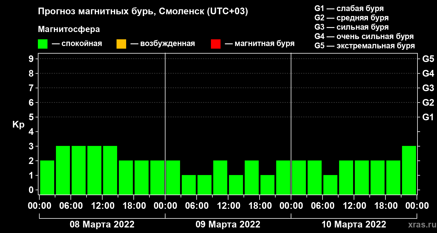 Прогноз магнитных бурь в Смоленске — 8 марта 2022 года